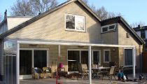 - 90.houten veranda van hardhout met glazen zijwand